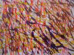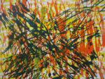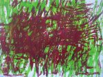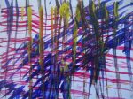 With the 7 and 8 year-olds, I was able to find a balance a bit better than the other age groups. For the last few weeks, we have been working with printmaking. I found some old blush brushes in a box, so we wrapped them in yarn, painted them, and rolled them on paper to see what patterns and designs could be made. I was so excited when one student approached me after her first design and said, “I used too much paint. Can I have another piece of paper to start another one?” I could tell that they were learning, but we also produced some pretty cool prints! We wrapped up the project in the Elijah Pierce Gallery today, talking about how art is displayed and how artists title their work. So far, we have over 30 completed and titled pieces to hang in the Kids Gallery! Here are some pictures of what the students designed: