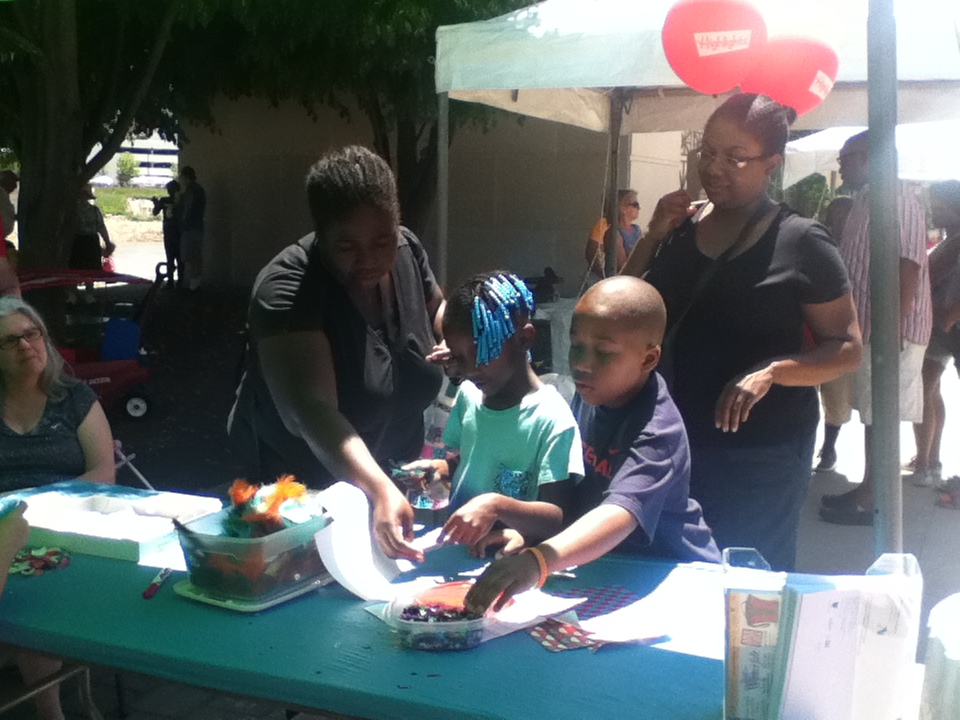 Our presence at the festival is a great way to reach out the community and let people know what the Ohio Craft Museum has to offer. Many people who stopped by had never heard of the museum before, so I was really excited that I could give them some information, a brochure or two, and a personal invitation to come visit the gallery. And it was so great to see kids excited about making art! All day I saw kids proudly wearing their collage badges, and showing off their other projects and masterpieces they created.