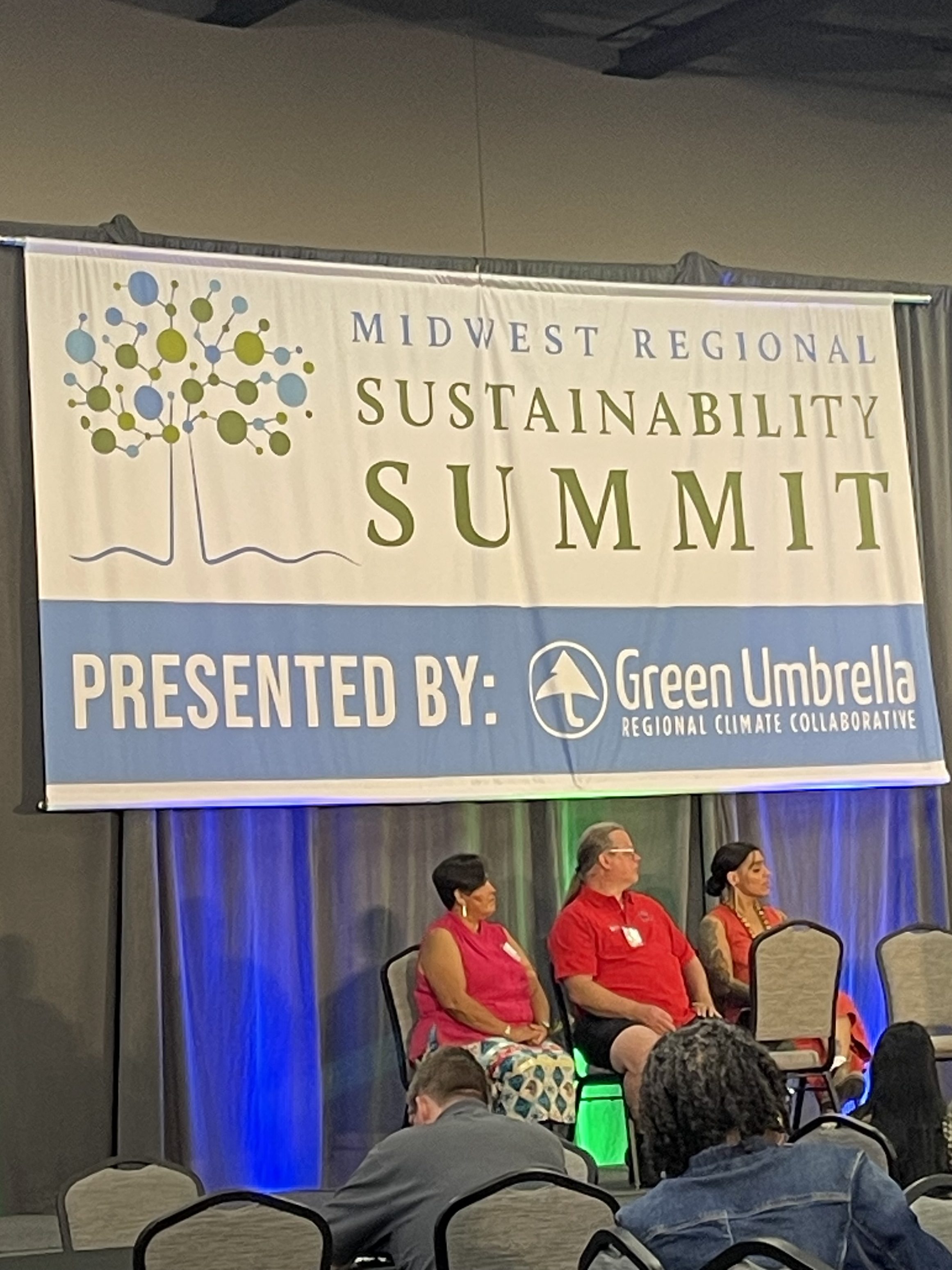 This week I attended the Midwest Sustainability Summit in Cincinnati with my boss and learned so much about Indigenous Knowledge Systems in sustainability. Several of the speakers at the summit were Indigenous leaders from across the country who spoke about their experiences with advocating for environmental justice and being Native American in the U.S. It was awesome to hear their inspiring stories and perspectives. I also attended a breakout sessions about green workforce development that was also very interesting. I overall felt that I learned so much from attending this conference and it was certainly the highlight of my work week.